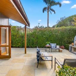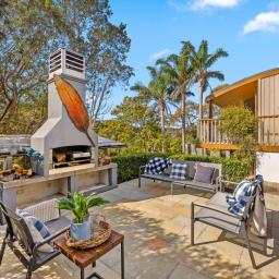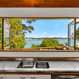 Step inside to find light-filled open-plan living areas on split levels, designed to capture the ever-changing harbour views. The lounge spaces, opening out on both sides, to a generous deck and a courtyard with an outdoor fireplace that invite effortless indoor-outdoor living and entertaining