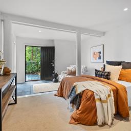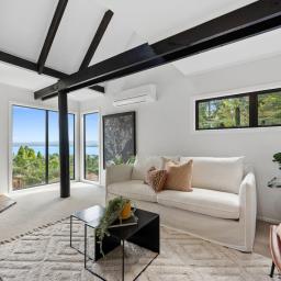 The bedrooms are generously proportioned, with the master suite enjoying leafy outlooks, sea views and easy access to a well-appointed bathroom. High-quality finishes, warm natural tones, and tasteful updates throughout the home add a touch of understated luxury, while large windows and sliding doors invite the outdoors in.
