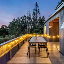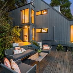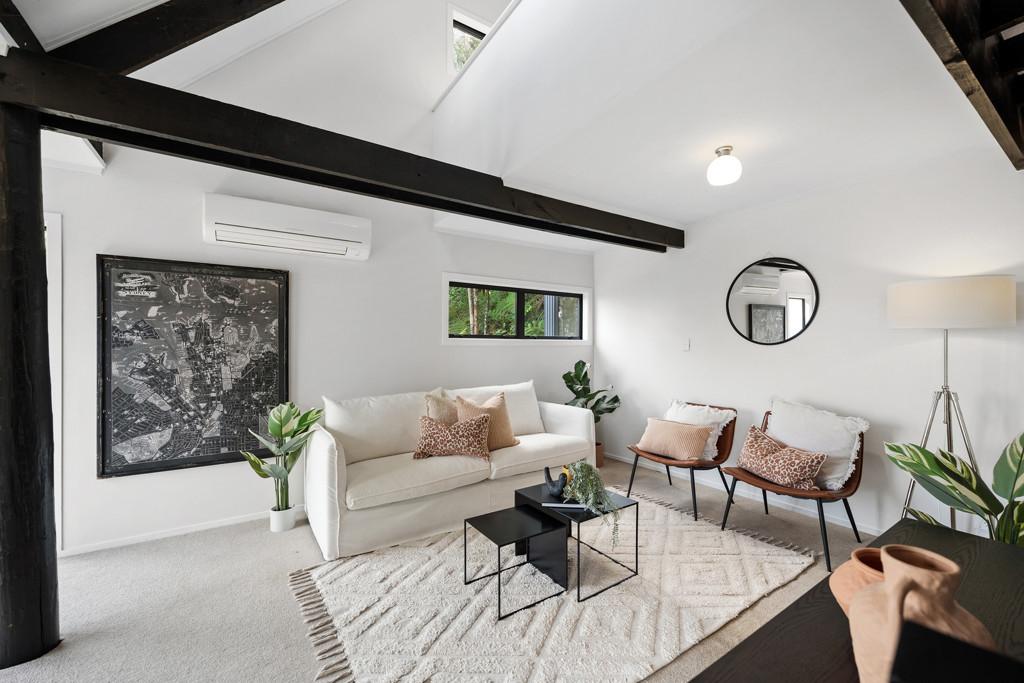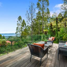From the moment you arrive, a sense of privacy and tranquility envelops you. Spread across two thoughtfully designed levels, the home features a clever separation of living and working spaces, ideal for modern lifestyles or those who work remotely. With open plan living and dining flowing out to an entertainer's deck, perfect for al fresco dining, sunset cocktails, or simply relaxing while gazing out across the treetops to the ocean beyond.
