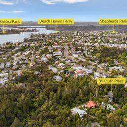 Welcome to 35 Pluto Place, Beach Haven! Nestled in an exclusive bush setting and surrounded by the serene sounds of native bird song you'll find this 3-bedroom, 2-bathroom family home offers a rare blend of natural beauty, refined living, and contemporary comfort. Designed to take full advantage of its elevated position, capturing sweeping sea views from multiple vantage points - making every day feel like a peaceful escape.