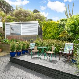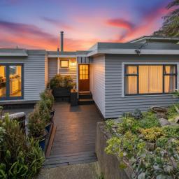 Sitting on a sizable and sun soaked 506sqm section, the property is adorned with feijoa trees and succulents throughout, and multiple beautiful and sheltered garden spaces to enjoy it from.