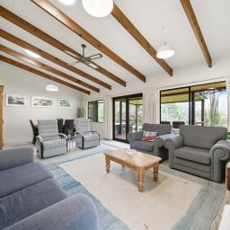 Set amongst Gladstone's rolling hills and peaceful farmland, The Sanctuary is a place where nature and comfort exist in perfect harmony. From its elevated position, the home captures sweeping views across the Tararua Ranges, basking in all-day sun and surrounded by birdsong and calm - the true essence of Wairarapa living.
