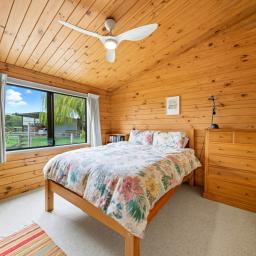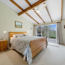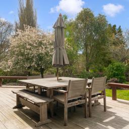 You'll stay cozy with the wood-burner and appreciate the thoughtful details - Rinnai gas hot water, Smeg oven and cooktop, and the reassurance of your own bore water supply. Step out onto the northwest-facing deck and breathe it all in - the tranquil pond below, the mature trees dancing in the breeze, the melody of the Kourarau Stream, and the native birds that call this retreat home.