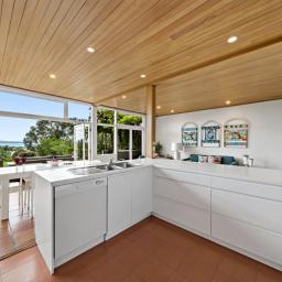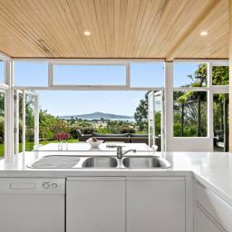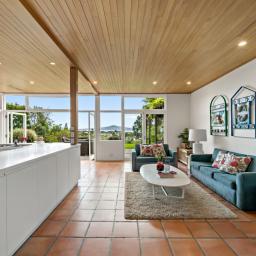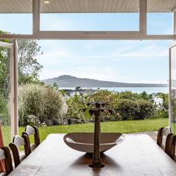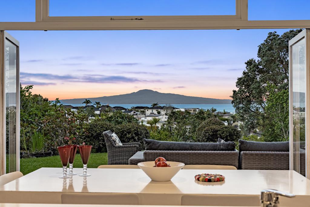 Perched proudly on the ridge and capturing sweeping views of Rangitoto, this striking North facing 1950s residence embodies enduring architectural elegance and relaxed sophistication.