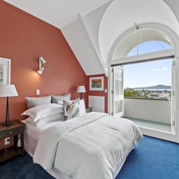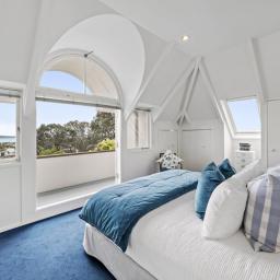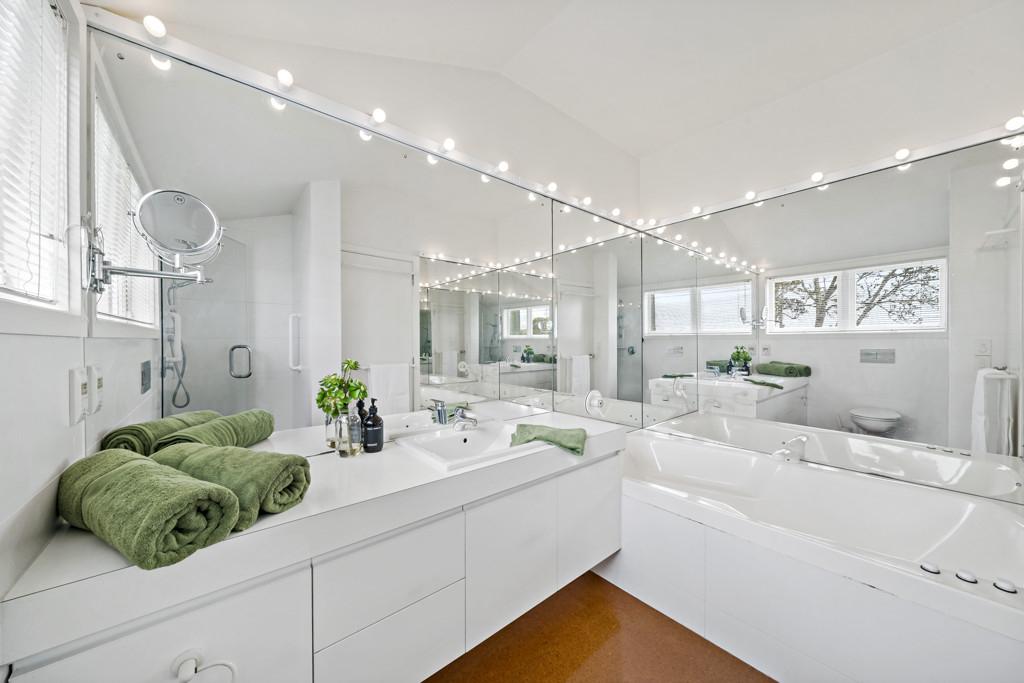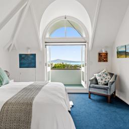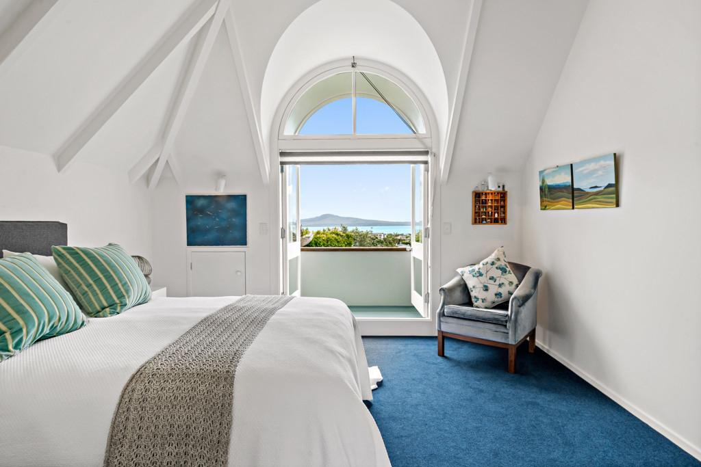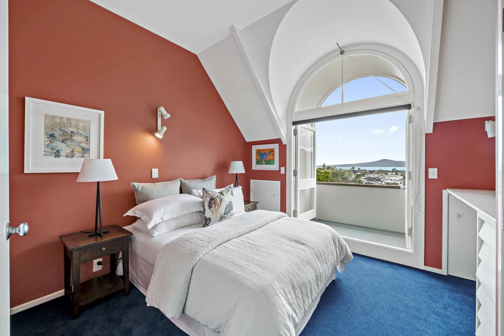 This beautifully designed residence offers a flexible and luxurious layout across two levels, ideal for both family living and entertaining. Upstairs, two generous double bedrooms are complemented by a stylish bathroom and separate powder room, while the master suite enjoys complete privacy with its own ensuite, private balcony, and breathtaking panoramic views across the water to Rangitoto.