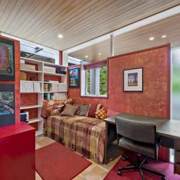 Defined by its signature curved dormer windows, steep gabled roofline, and expansive glazing, this residence is an architectural statement of enduring grace. Originally crafted in the mid-century era and thoughtfully reimagined by Buisson and Strez Architects in 1987, it embodies a rare harmony between modernist design and timeless European influence. Sunlight pours through walls of glass, creating effortless indoor-outdoor flow and framing lush garden vistas from every angle.