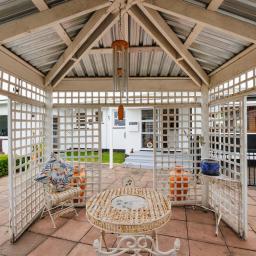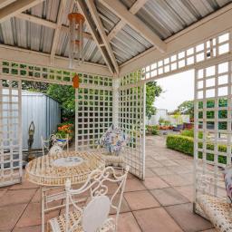 Well established fruit trees, raised vegetable plots, and room to play. The three garden sheds are ideal for storing wood or garden tools. It's very private out back, and landscaped with an all-weather paved area. Wonderful relaxation under the big gazebo, out of the burning sun, is very welcome. Well maintained property, tandem garage and big old shed for extra firewood storage.