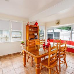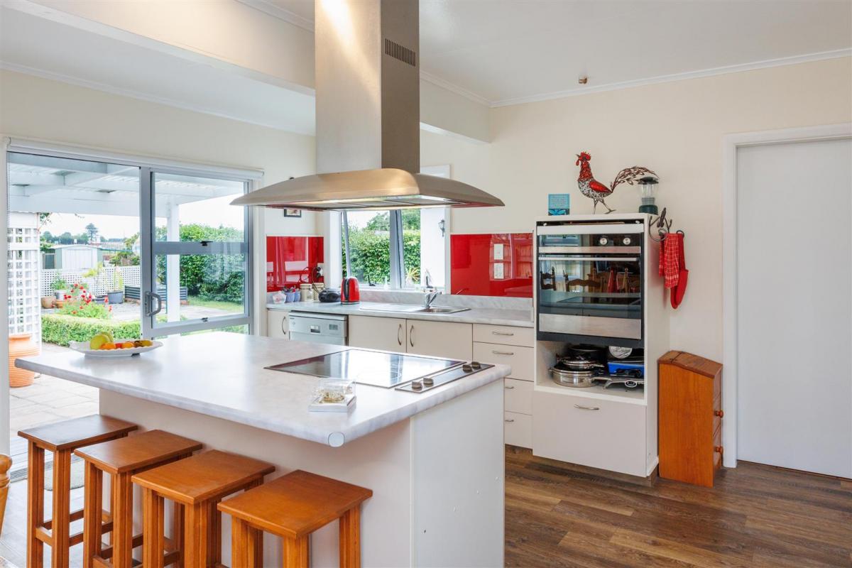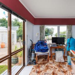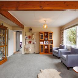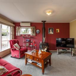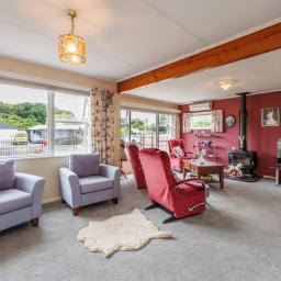 The modern kitchen features a breakfast bar and has the spaciousness for your large dining table. It's light and sunny. The separate living room has been extended and again, gives you more living space. There are two good sized bedrooms and a small bedroom with access to the outside. Separate laundry, bathroom/toilet combined. The convenience of a heat pump is great, ceiling and underfloor insulation plus woodburner. There is an electric hot water cylinder of 180 litres.