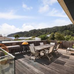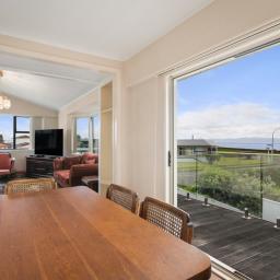 Set across two levels, the layout offers flexibility for families or guests. The top level features open-plan living and dining areas that flow effortlessly to a sun-soaked deck - the perfect spot to unwind and take in the panoramic sea views and stunning sunsets. The modern kitchen is well appointed and ideally positioned for entertaining or relaxed everyday living. This level also includes two bedrooms and a family bathroom.