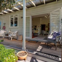 Oozing charm and personality this delightful character retains original features complimented by updates for todays easy living style. Street appeal beyond the picket fence welcomes to explore. Generous wide entrance hall with stunning polished wood floors lead you through to find three good sized bedrooms the master gets to bathe in afternoon sun and offers ensuite and walk in robe. High stud ceilings throughout and a magnificent light fitting in the hall which is often much admired. The main family bathroom is fabulous with claw foot bath for luxurious lazing and the calming colour palette creating a peaceful ambience. From the hall enter the social living space, it is light filled with living, dining, kitchen all interconnected allowing easy everyday living. Comfort assured year round with wood burner and heat pump. Adjacent to the kitchen a utility/ laundry with easy access to the back verandah. The soothing colours throughout are reminiscent of a Greek holiday and the shabby chic interior styling by the current owner delivers the vision of a comfortable home to enjoy. French doors open from living onto the north facing covered deck, soaked in afternoon sun and embracing the leafy garden vista which is private, perfect for entertaining friends or just taking time out to reflect on life and listen to the abundant birdsong. At the rear of the property in keeping with the character of the home, a large single garage with workshop at the rear along with wood storage. Fully fenced perfect for pets and children.