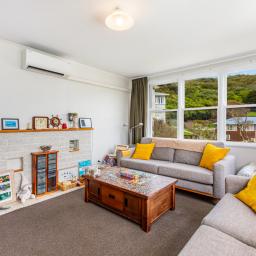 Spread over two levels, the home features three bedrooms, a tastefully upgraded bathroom, and a separate office/study - ideal for working from home. The separate lounge with heat pump provides a cosy retreat, while the open-plan kitchen and dining area creates a great space for everyday living.