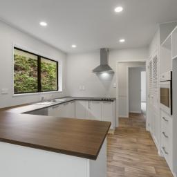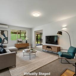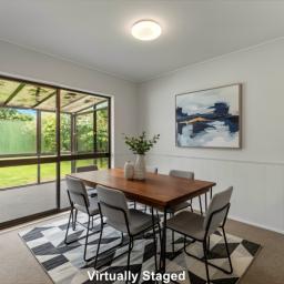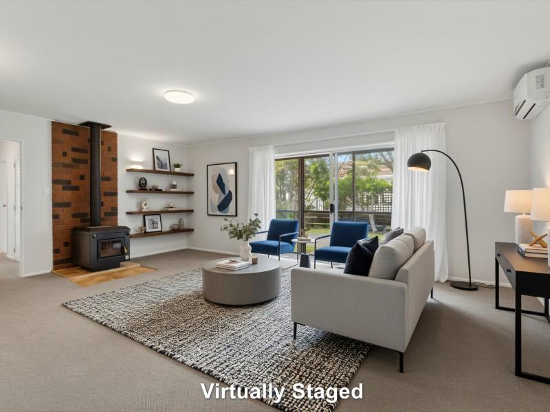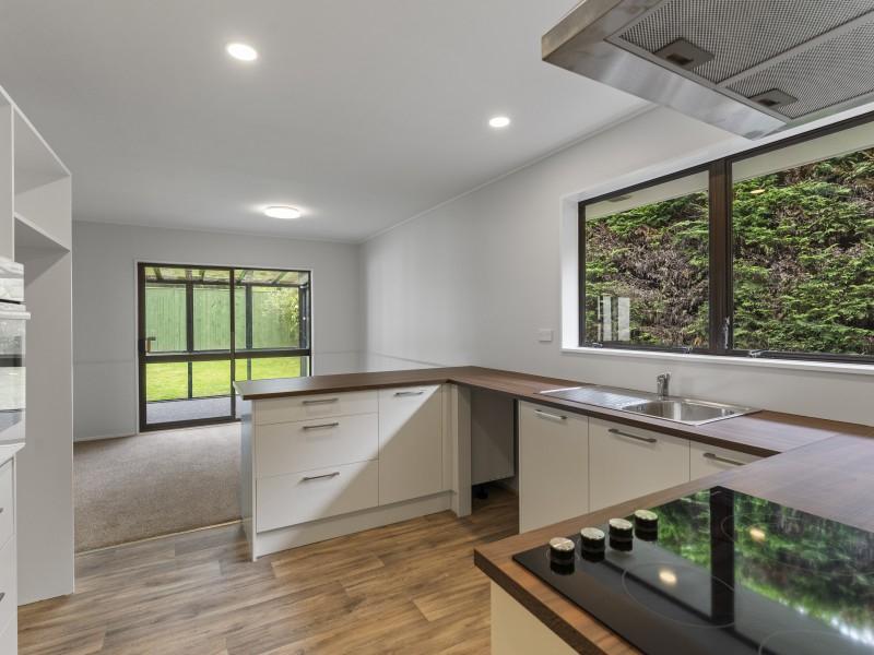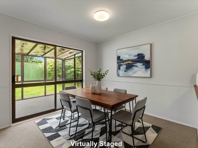 The modernised kitchen has been completely refreshed with new cabinetry, a new hob and rangehood, and connects seamlessly to the dining and living areas. Off the dining space, the sunroom captures the afternoon light beautifully, a perfect spot to relax, read, or enjoy a quiet moment. A heat pump keeps the home comfortable, and the covered entranceway offers a sheltered welcome.