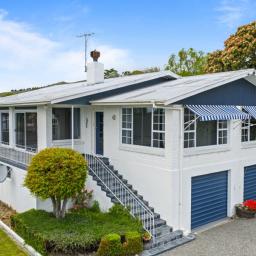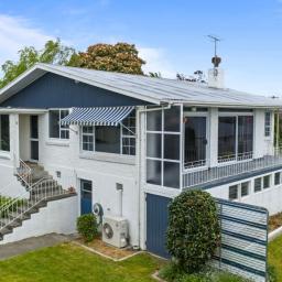 This classic 1960s two-storey brick home stands proudly elevated to capture sweeping views that stretch right down to Blenheim’s CBD and back to the Wither Hills and Richmond Ranges. Distinguished by its striped awnings and elegant concrete balcony with wrought iron railings, this home carries the unmistakable character of its era while having been carefully maintained and modernised over time.