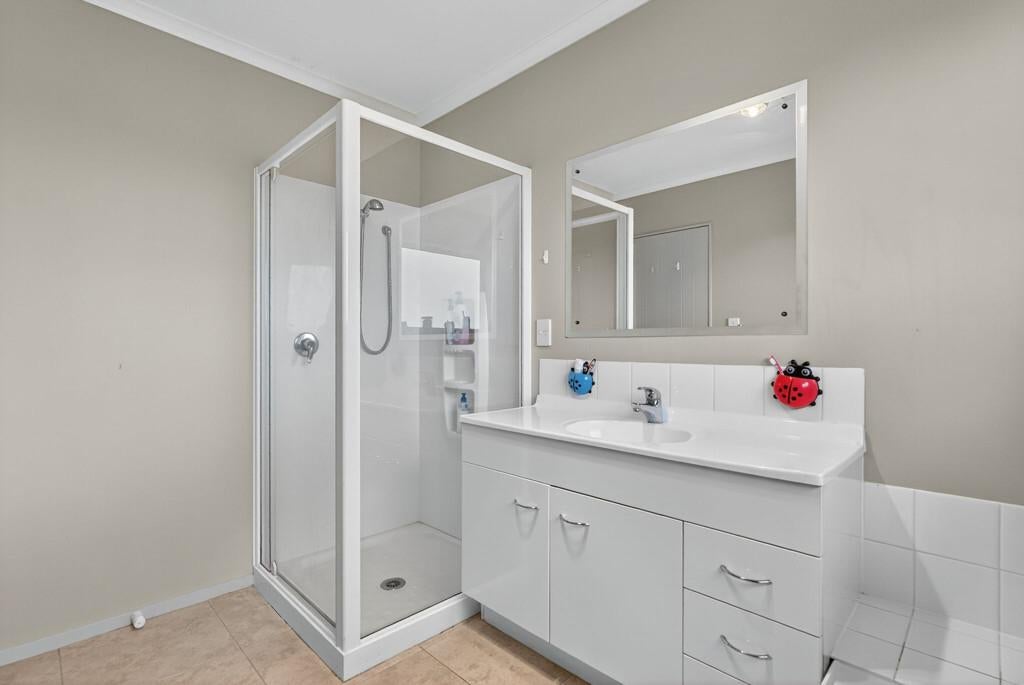 • Three double bedrooms, including a master with ensuite, walk-in wardrobe, and ranch slider access to the patio.