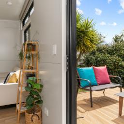 The decor is neutral ready for your splash of personality and entertaining is made easy - you can double the living room space by sliding back the doors and strolling out onto the sun-drenched deck. The insulation along with the double glazing provides cool summers & warm winters.