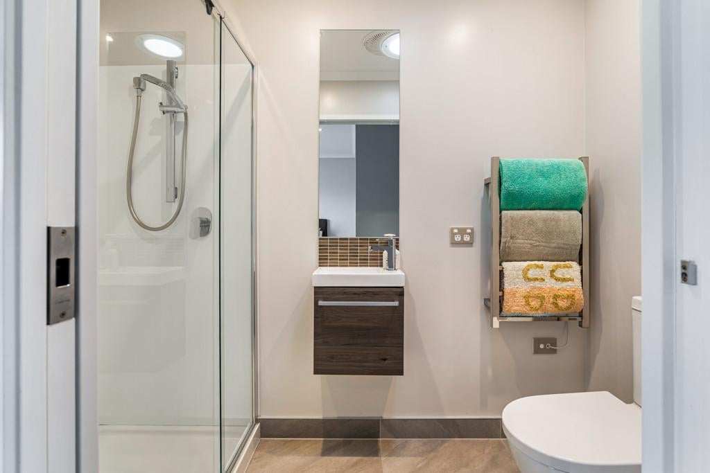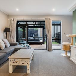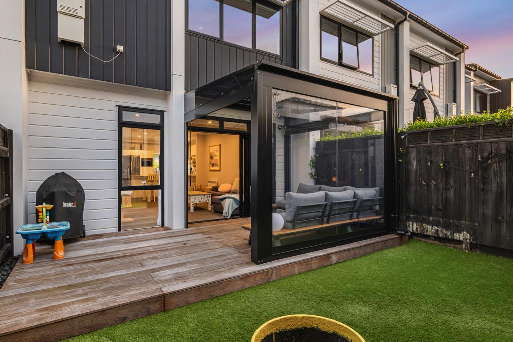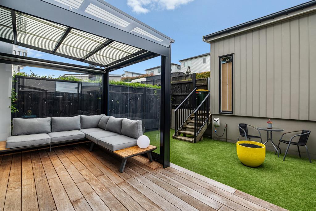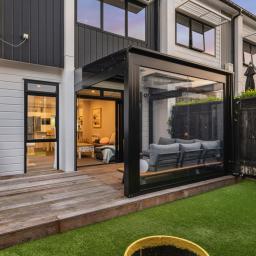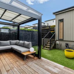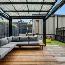 The open-plan kitchen, dining, and lounge area flows effortlessly to a private outdoor entertaining space. The Shades Direct covered pergola extends your living area with pull-down sides - perfect for cozy winter evenings or relaxed summer gatherings. With quality astroturf, your weekends are free from lawn maintenance so you can simply unwind and enjoy.