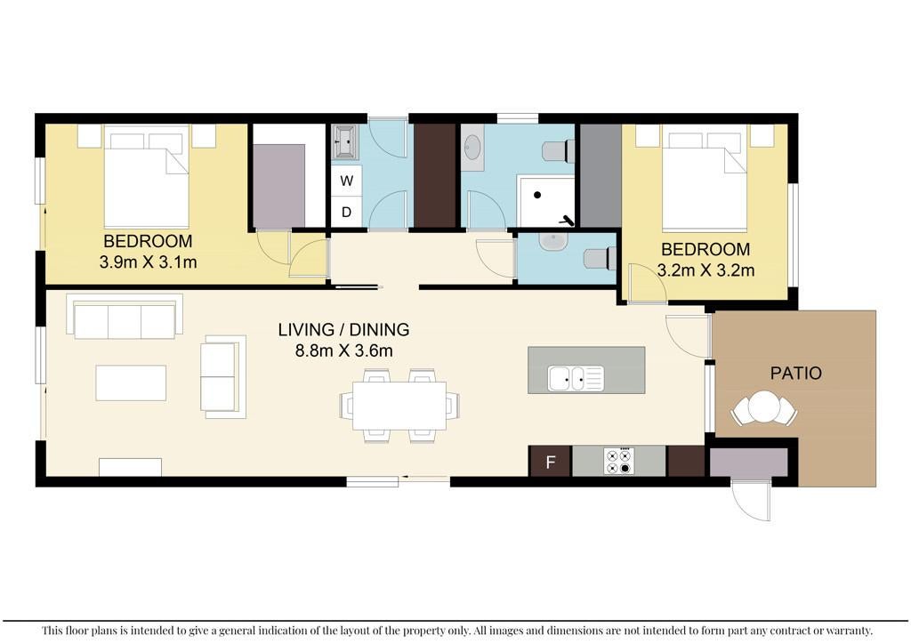 This thoughtfully designed two bedroom home has one bathroom, plus a second toilet for added convenience. The super spacious living area features a modern kitchen, open plan dining and lounge, all opening out to the patio and gardens. Enjoy sunny outdoor living with low-maintenance gardens, ideal for relaxing or entertaining.
