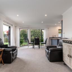 Set on TC1 land, this spacious 209sqm home on a 553sqm section enjoys light-filled, north-facing living that opens through three sets of French doors to a sunny, fully fenced outdoor area. The established garden features roses and mature trees, offering both instant charm and exciting potential for those with a green thumb to further enhance and personalise.