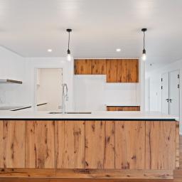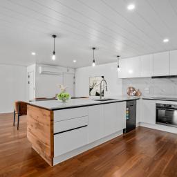 A large open-plan kitchen, complete with pantry, large breakfast bar and quality appliances, is located on the lower floor which can be easily accessed via a lift/elevator from the formal entranceway on the top level.