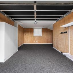 • Parking: Includes a single internal access garage, and lawn space to park the boat.