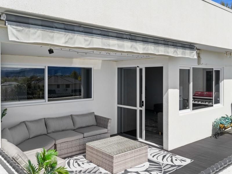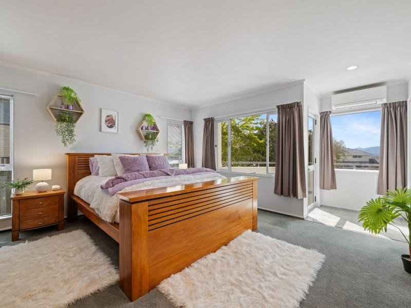 The home provides four generous bedrooms and three bathrooms, including a substantial master suite that incorporates its own private wing for space and privacy. The living room is spacious and sun-filled, designed to maximise natural light and outlooks, creating a welcoming hub for family living. A balcony extends the home's appeal, perfectly positioned to take in Marlborough's landscape and soak up the sun.