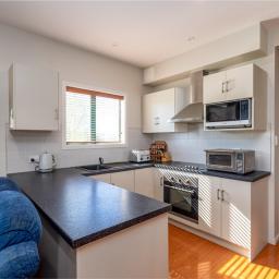 The 2018-built home features open-plan kitchen, dining and living with log fire and heat pump, three bedrooms and excellent storage, including walk-in wardrobe and balcony off the master bedroom.