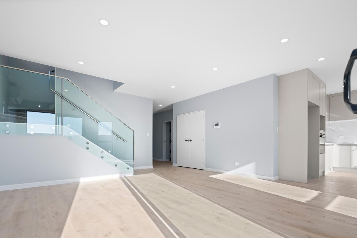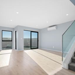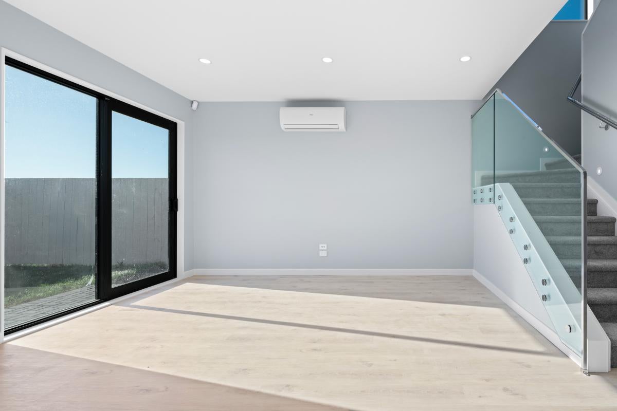 Upstairs, a central lounge provides an ideal second living zone for kids or relaxation. The master suite enjoys its own walk-in wardrobe and ensuite, while three additional bedrooms share a modern family bathroom. Quality finishes, double glazing, and year-round comfort with heat pumps ensure this home is as practical as it is stylish. Outdoors, the low-maintenance garden and private patio create the perfect setting for entertaining or unwinding at the end of the day.