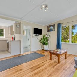 The lounge and 2 bedrooms open up on the deck to enjoy the bush setting for your morning coffee or evening entertaining. The master wing includes a lovely bedroom, bathroom, and another living space. The house has a code compliance for peace of mind, including a new septic system.