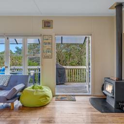 This delightful home offers a private bush setting, whether for permanent residence or holiday living, and is just a stroll to the beach at Matheson Bay