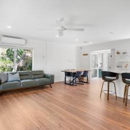 From sunrise to sunset, this home is bathed in light. The north-facing position captures the very best of the day. Sip your morning coffee on the elevated front deck, listening to the birdsong, and unwind in the evening, entertaining friends and family on the generous rear deck. A vegetable garden offers the chance to enjoy homegrown produce - a perfect space for those who value fresh food and time outdoors. A mature fig tree provides both seasonal fruit and natural shade, adding charm and a touch of abundance to this already special setting.