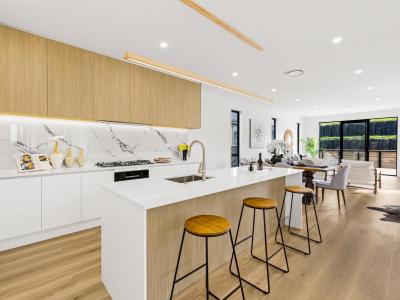 • Light-filled, open-plan living that connects to a sunny entertainers deck