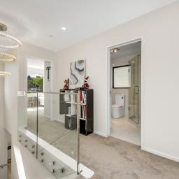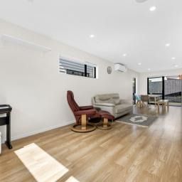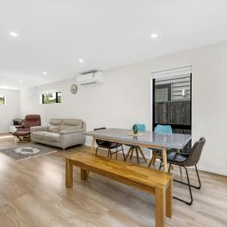 Upstairs, there are four spacious double bedrooms, including a luxurious master suite complete with ensuite. A family bathroom, guest powder room, and laundry area provide extra convenience, while the internal-access garage ensure practicality for busy households. Comfort is assured year-round with a built-in heat pump, while added features such as a gas cooktop, burglar alarm and integrated speakers enhance everyday living.