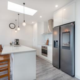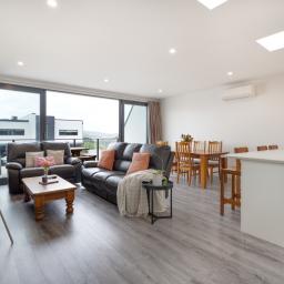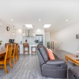 The open plan kitchen offers great bench space and plenty of storage with an Induction hob and underbench oven. An all electric home with heat pumps to take care of all year climate control.