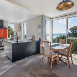 Flooded with natural light, this beautifully maintained residence features many floor-to-ceiling windows that capture breathtaking vistas. The open-plan kitchen and dining area is both stylish and functional, with gas cooking, generous storage, and seamless flow into a sunlit lounge. Step out onto the deck perfect for entertaining or unwinding with a morning coffee.