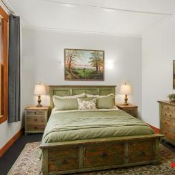 The Villa is adorned with native timber floors, double hung windows and lead-light accents, evoking a sense of nostalgia and charm. The high ceilings and a long, central hallway stretch from the front door to the back of the house, with three spacious bedrooms conveniently located on either side.