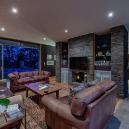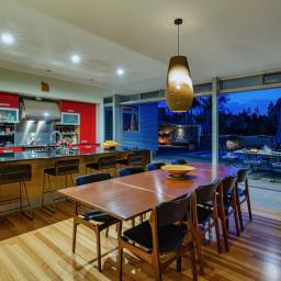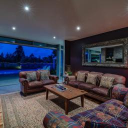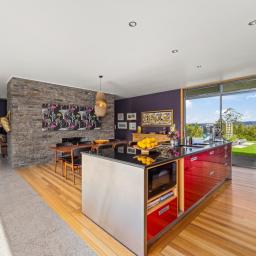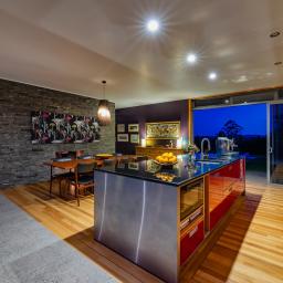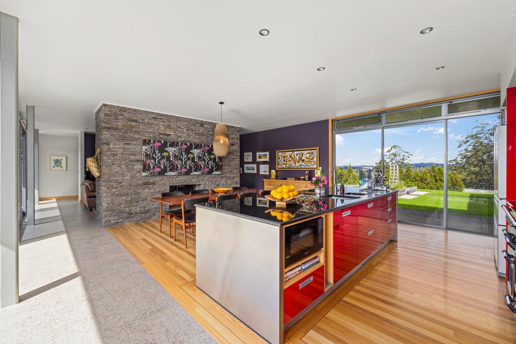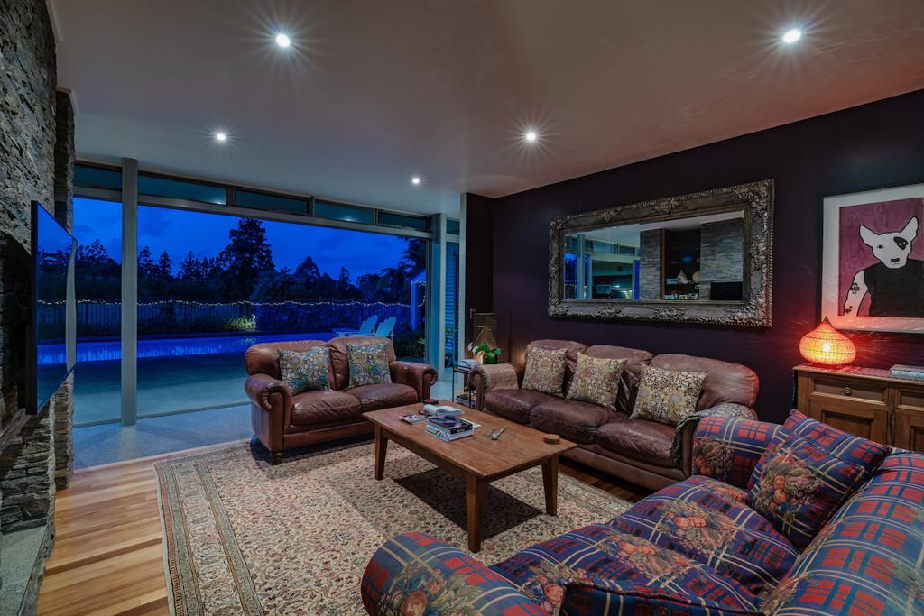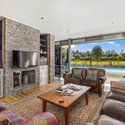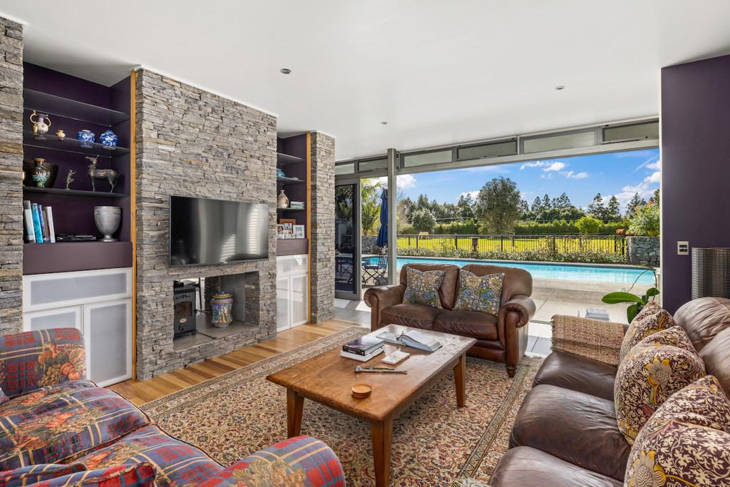 The architecturally designed family home will withstand time with its modern feel, detail to craftsmanship and ideal layout for family living. The open plan lounge, dining and contemporary kitchen link two north facing bedroom pavilions. This whole area opens out through floor to ceiling glass doors to the pool and sheltered courtyard with handcrafted stone walls and outdoor fireplace. An entertainer's dream, or a perfect place to relax. You will never have to leave home to feel you are on holiday. To the south there are extensive views of the river valleys.