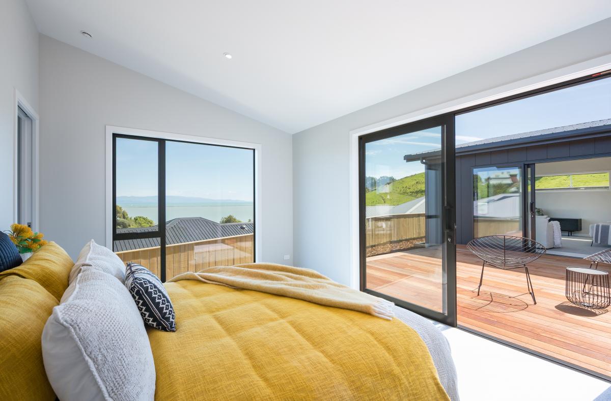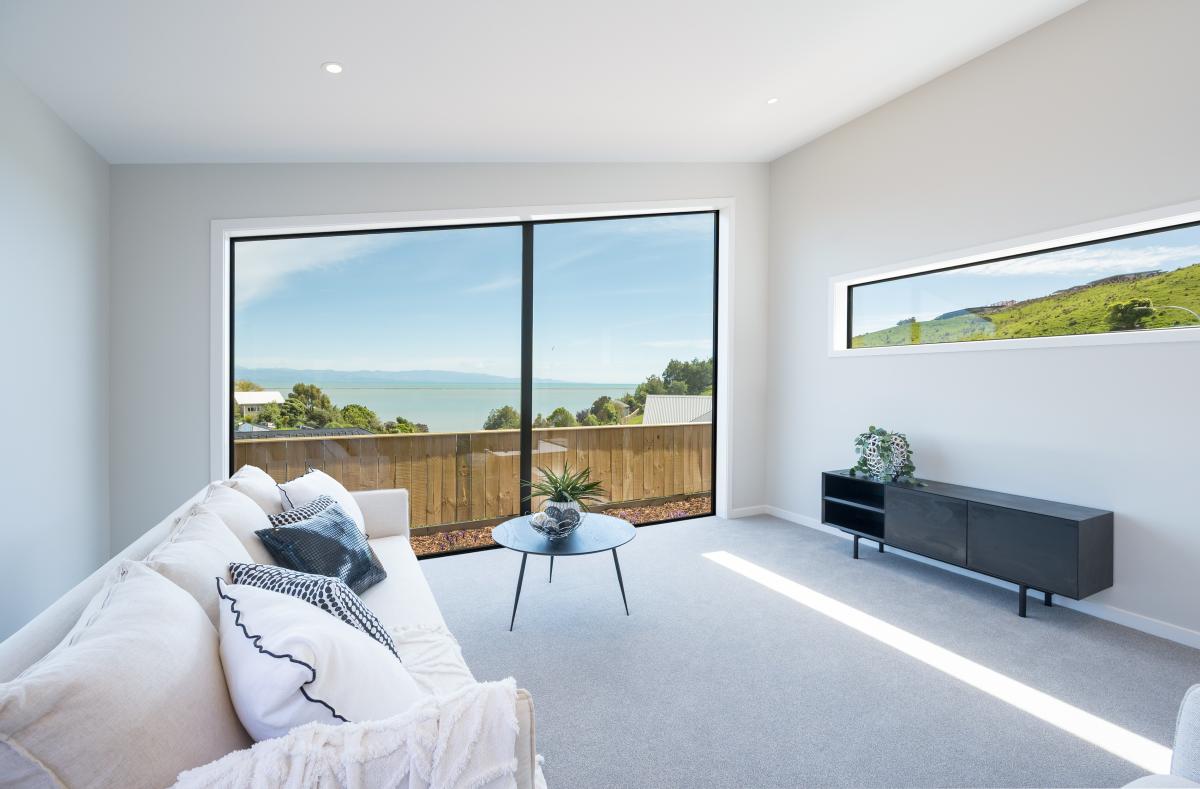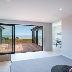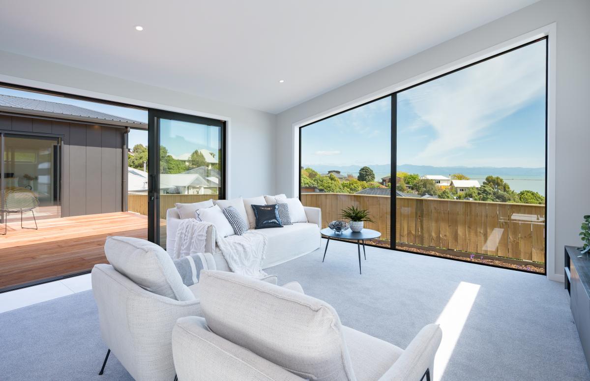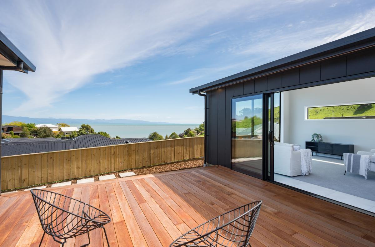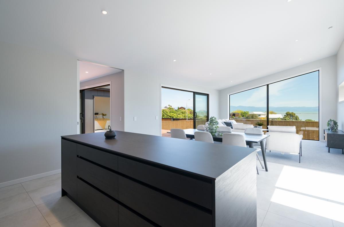 The kitchen and bathrooms feature custom joinery and premium finishes, reflecting craftsmanship and attention to detail at every turn. The open-plan design connects seamlessly to outdoor living, making the most of Nelson’s sunshine and coastal outlook.