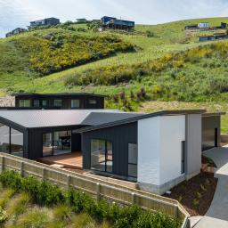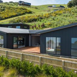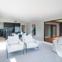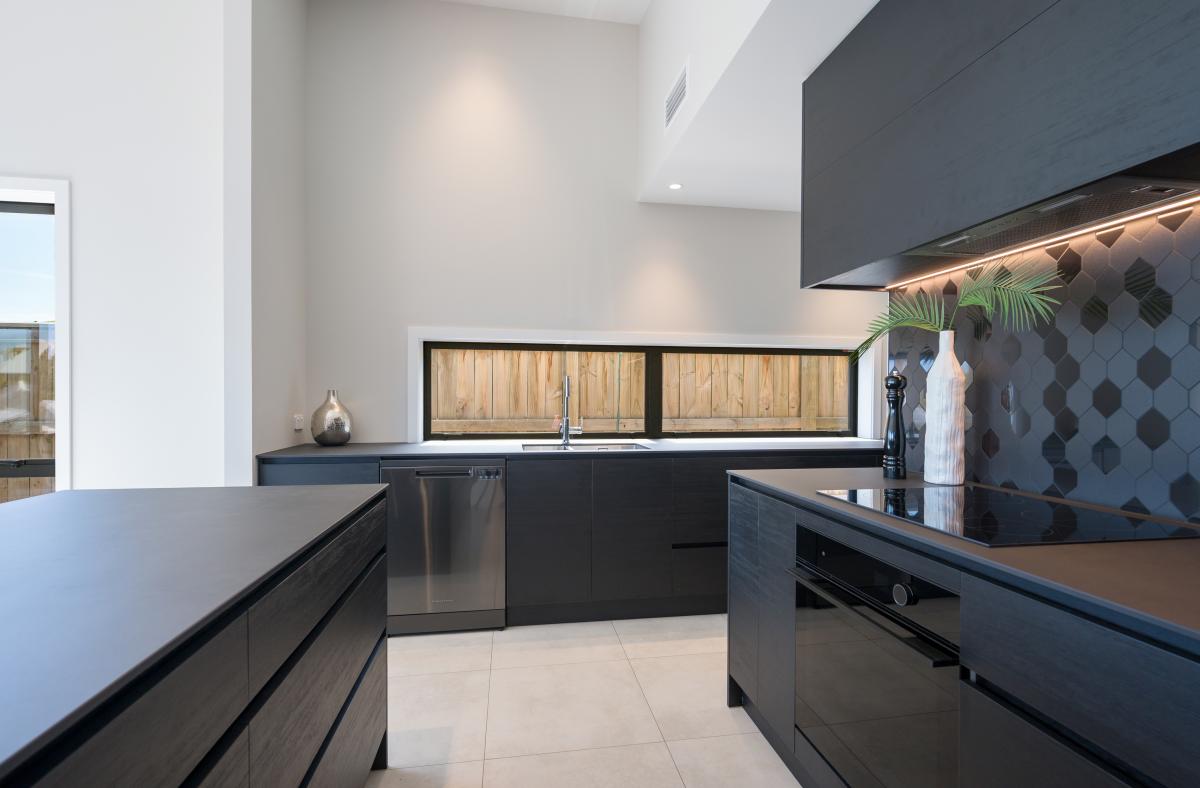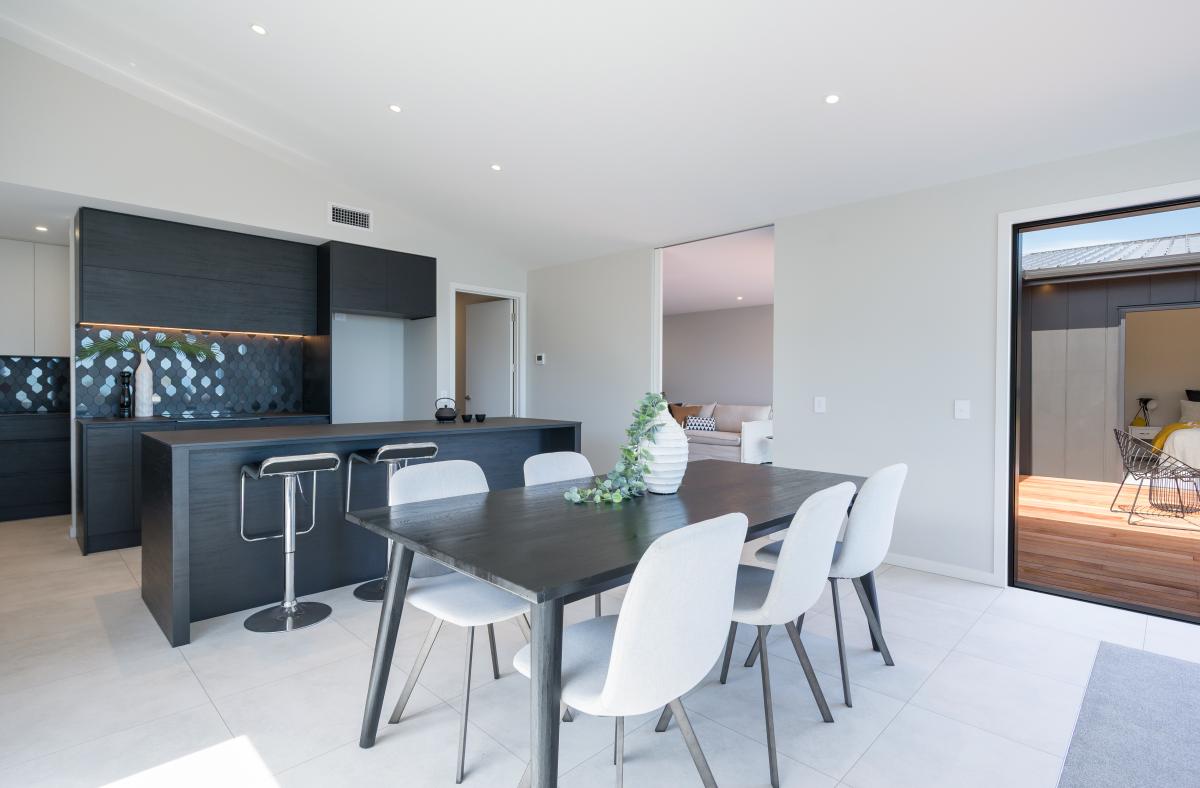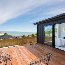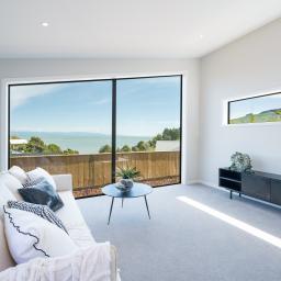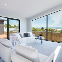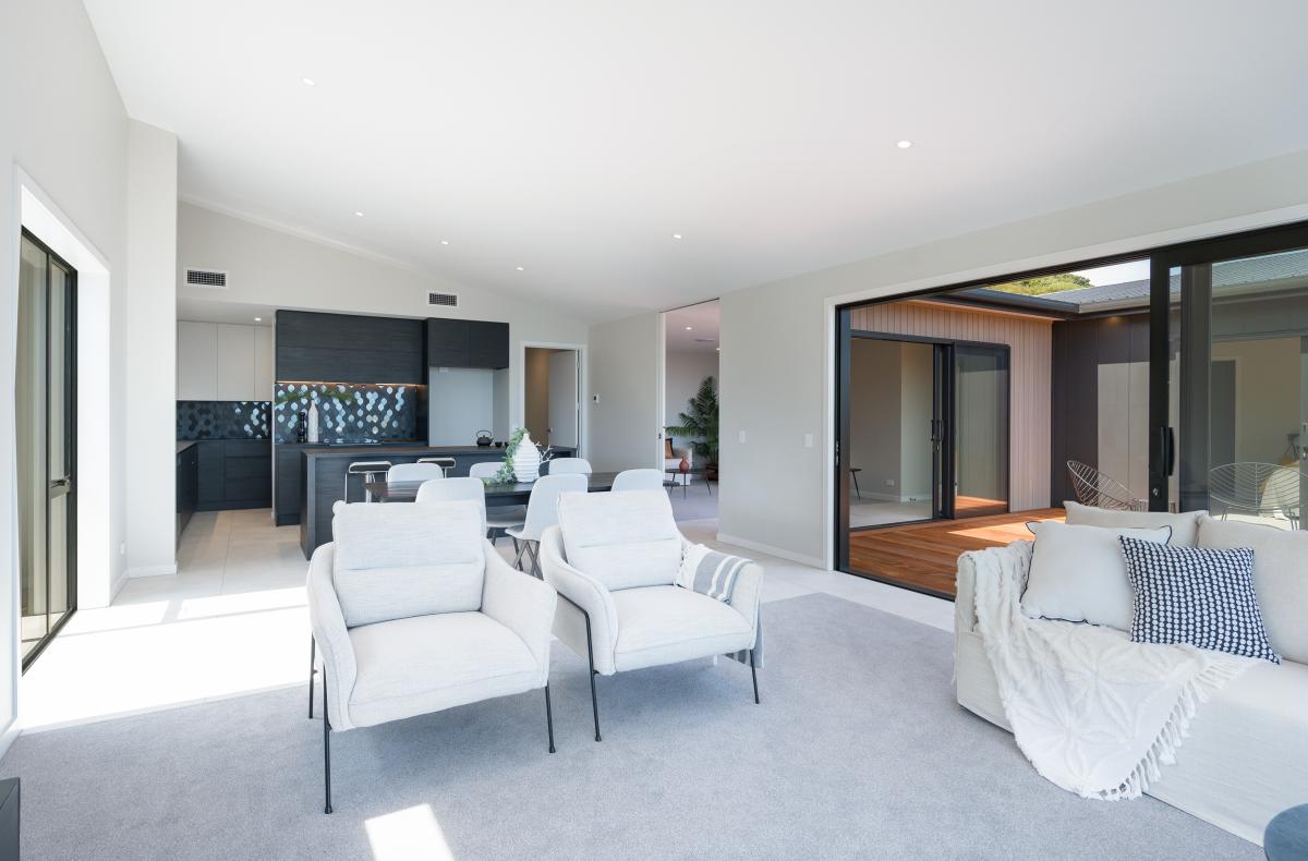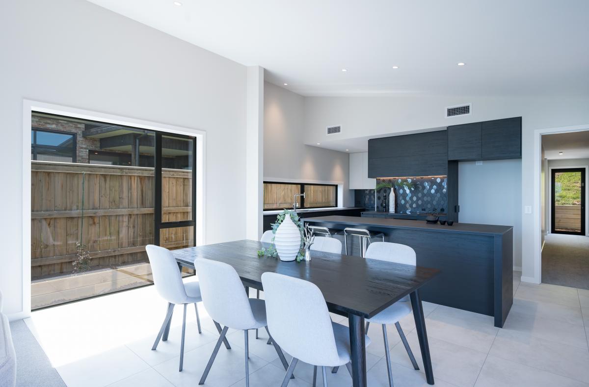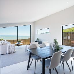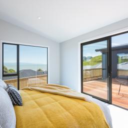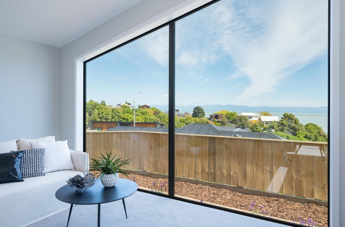 The kitchen and bathrooms feature custom joinery and premium finishes, reflecting craftsmanship and attention to detail at every turn. The open-plan design connects seamlessly to outdoor living, making the most of Nelson’s sunshine and coastal outlook.