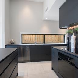 • Sleek designer kitchen providing an abundance of storage with the work spaces finished in Laminam porcelain