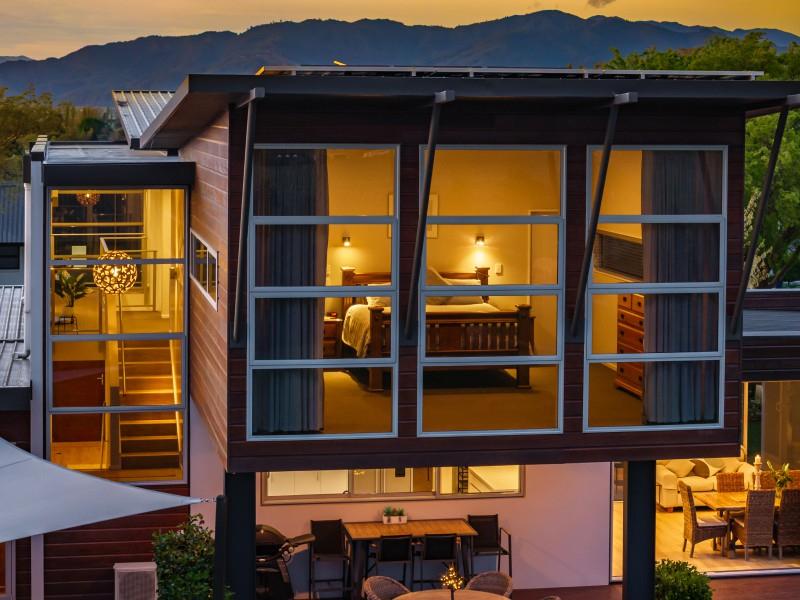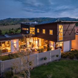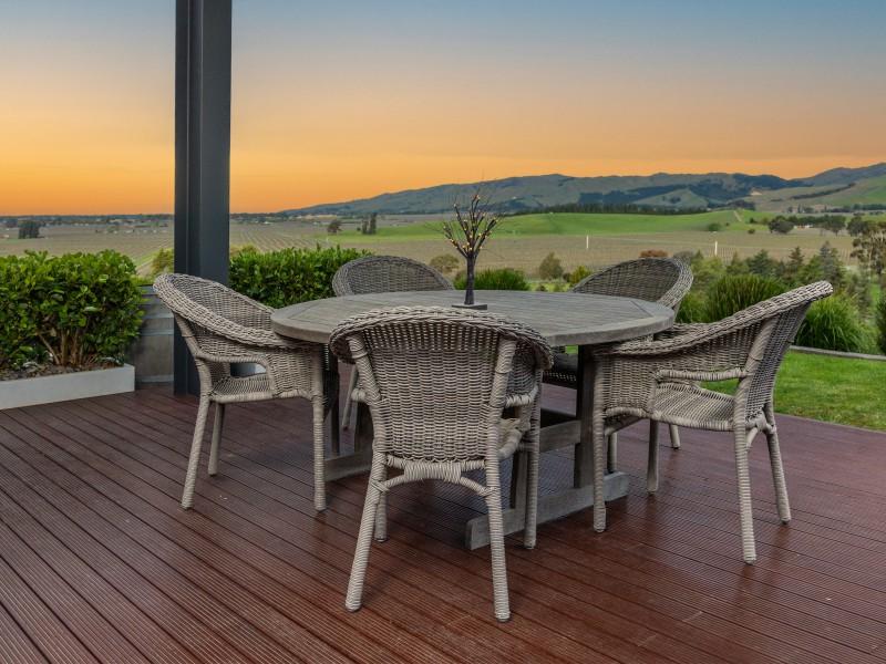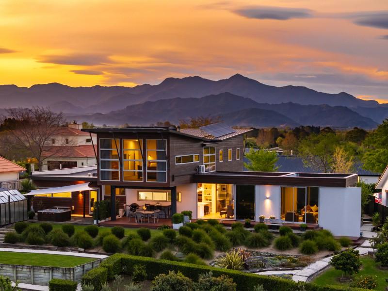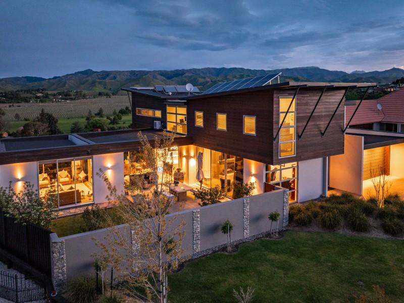 Located on the popular Marlborough Ridge, an active community developed around an 18 hole golf course, this sturdy concrete tilt-slab and cedar home enjoys spectacular views, across Cook Strait to Wellington and over vineyards to the impressive Richmond Range.