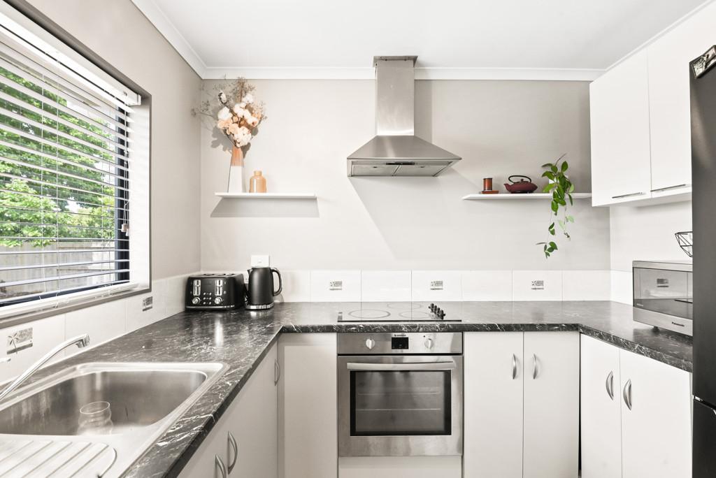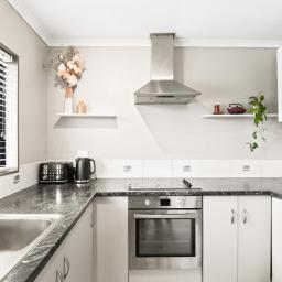 The modern kitchen accompanies an open plan living area and dining which leads to both front and the covered carport at the back. Off the living area are two bedrooms, main bathroom and laundry.