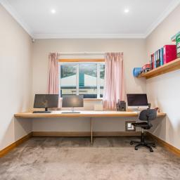 • Four spacious double bedrooms, each with built-in storage. A possible fifth bedroom, ideal home office space or hobby room