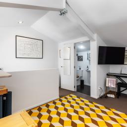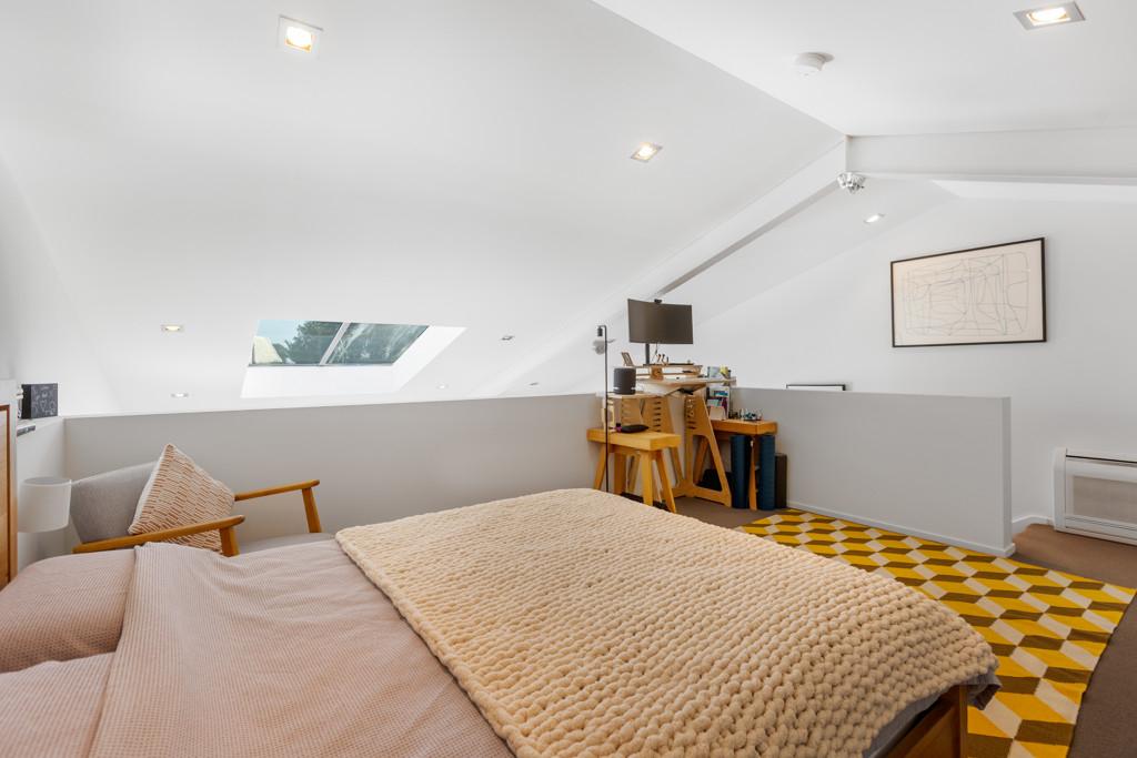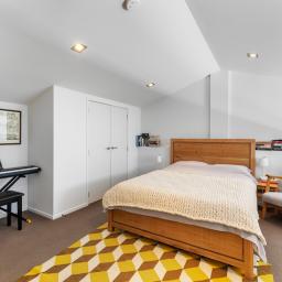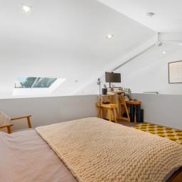 A mezzanine creates a private sanctuary for the master bedroom. This is a true retreat. A separate toilet is conveniently located on this level.