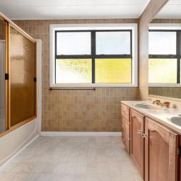 Inside, the home tells its own story - with features like coloured glass windows, retro light fixtures, and the kind of original carpet that speaks to a bygone era. A generous 101m2 footprint gives you plenty of room to move, while thoughtful additions like a separate laundry, shower and a large main bathroom with classic 'Jack and Jill' sinks bring a surprising level of practicality. Comfort is also well taken care of, with two heat pumps- one in the living area and another in the main bedroom - ensuring year-round warmth and ease.