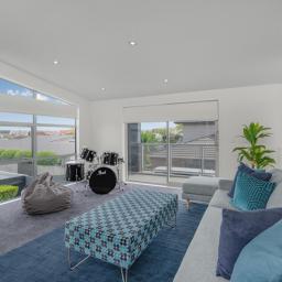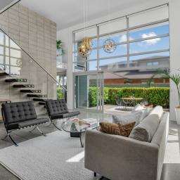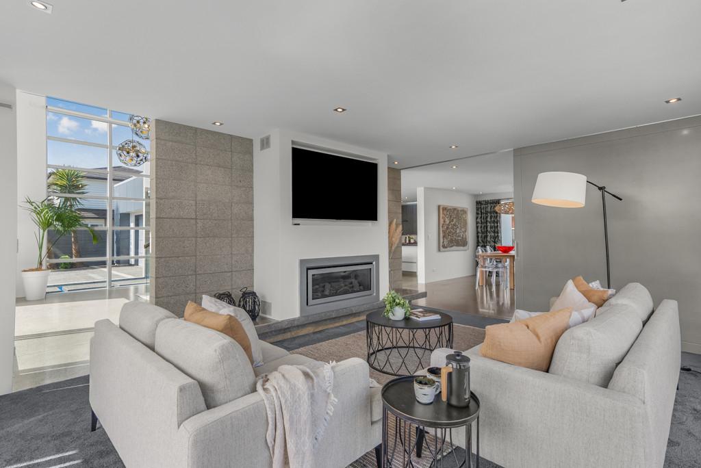 - The living area extends to a spectacular family space framed by 6-metre-high, floor-to-ceiling windows fitted with automated blinds. The entire area flows effortlessly to the west-facing patios, an idyllic setting for summer entertaining and sunset gatherings.