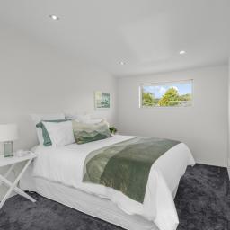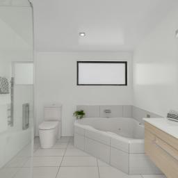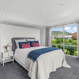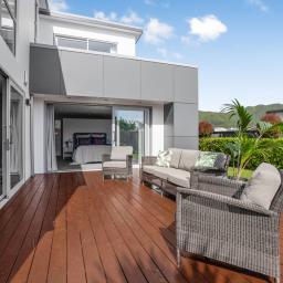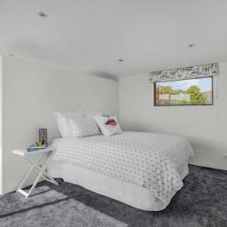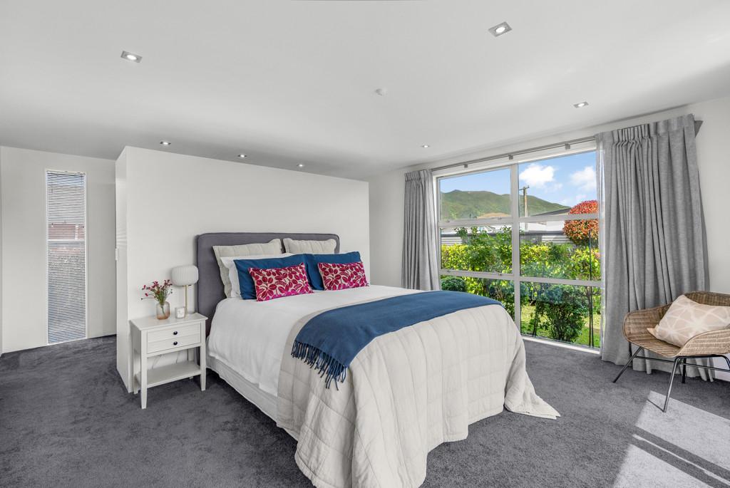 - The master suite offers a double shower ensuite, walk-in robe, and direct access to the southwest-facing deck.