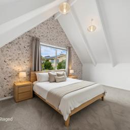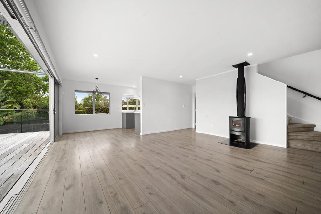 Bathed in all-day sun, the vaulted ceiling beneath a gabled roof creates a beautiful sense of space, while the wood burner adds warmth and charm during cooler months. The open-plan kitchen, dining, and living areas flow effortlessly to a large north-facing deck complete with remote controlled retractable awning and blinds, perfect for entertaining, family barbecues, or simply relaxing as the sun sets over the water.