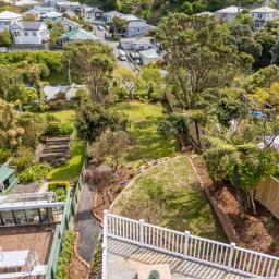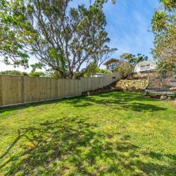 • A private, sheltered backyard spread over two tiers, featuring a freshly planted and low-maintenance garden with plenty of space for children and pets.