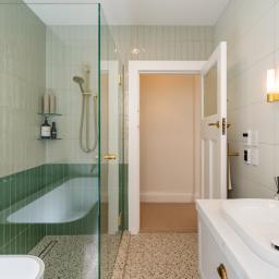 • A fully renovated family bathroom - tiled throughout with underfloor heating and premium fixtures.