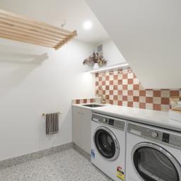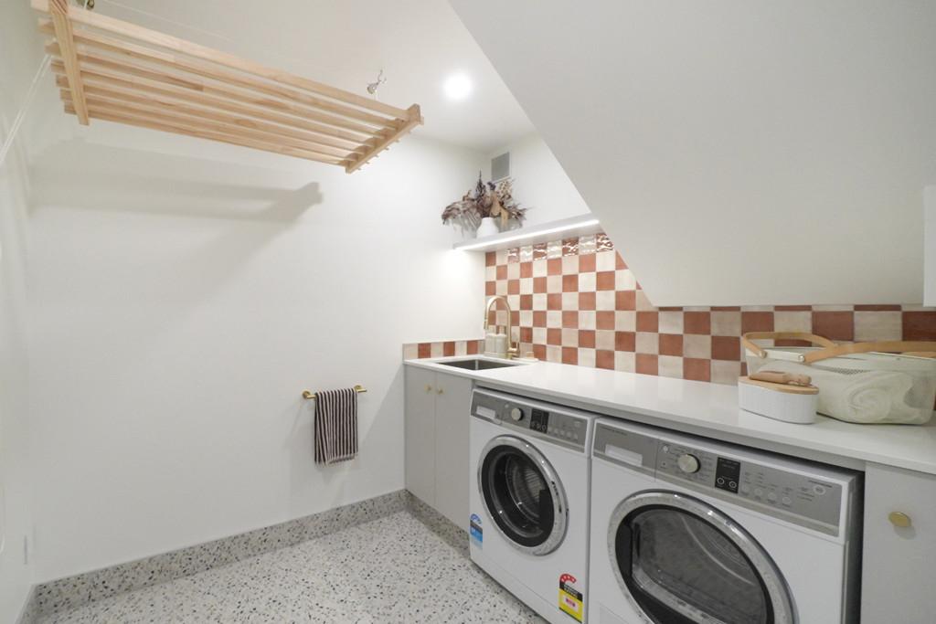 • Internal-access garage with great storage, which opens to a dedicated laundry which has been recently renovated to a high standard. Additional off-street parking for up to two vehicles.